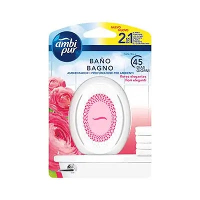 El ambientador para baño Ambipur neutraliza y ayuda a evitar los malos olores durante hasta 45 días, aportando una fragancia suave y refrescante.