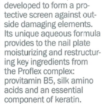 Forma una pantalla protectora que protege las uñas de las agresiones externas. Hidrata y evita el amarillamiento.