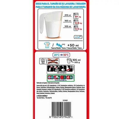 - Dosificación Adecuada: Utiliza la cantidad indicada en el empaque según la cantidad de ropa y el nivel de suciedad. Esto te permitirá optimizar el rendimiento de cada dosis, logrando un lavado eficaz sin desperdiciar detergente.