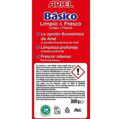 Beneficios del Ariel Básico Detergente en Polvo 40 Dosis