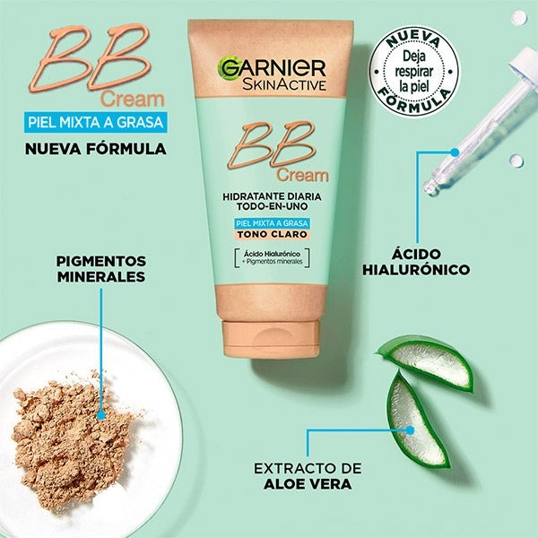 BB Cream Hidratante diaria todo en uno, ideal para pieles mixtas y grasas.