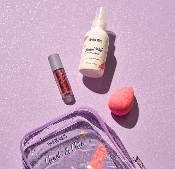¡Prepárate para brillar y mantener tu estilo en todo momento con este set! Contiene una bruma facial perfumada, el tinte de mejillas Lovely Cheeks y una esponja de maquillaje.