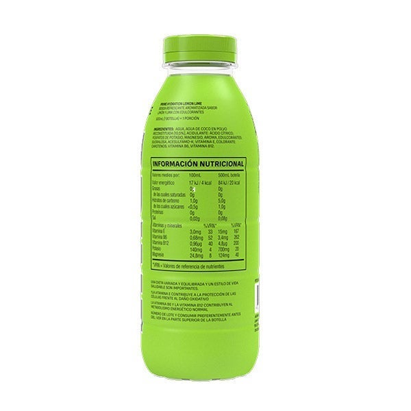 - Bebida hidratante y refrescante con sabor a lima-limón, endulzada con edulcorantes.
