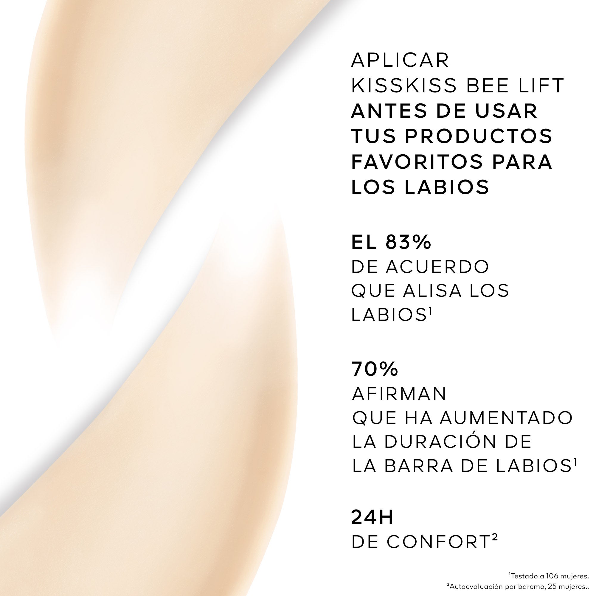 KissKiss Bee Lift es una prebase de tratamiento universal formulada con un 95 % de componentes de origen natural, enriquecida con miel de Córcega y cera de abejas, que deja los labios más suaves e hidratados, listos para recibir el color.