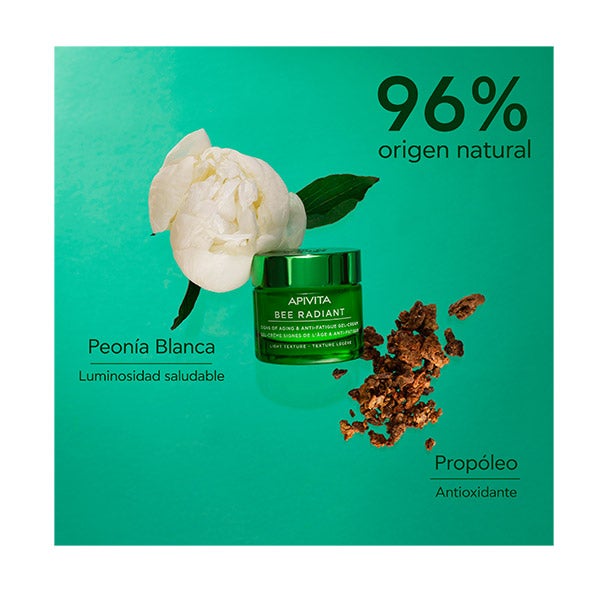 Una textura gel-crema ligera con peonía blanca y extractos patentados de propóleo que ayuda a prevenir, retrasar y reparar los primeros signos del envejecimiento (como líneas finas y arrugas), revelando una piel luminosa, uniforme, suave y descansada.