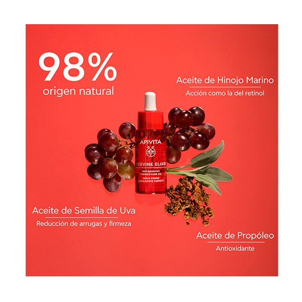 Con una combinación de aceites de propóleo y semillas de uva, nutre intensamente y contribuye a redensificar, dejando la piel con un aspecto lleno de vitalidad.