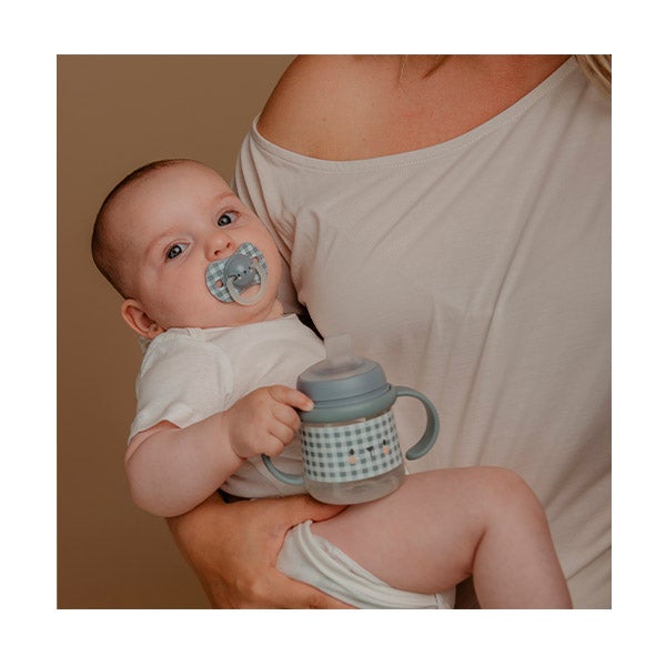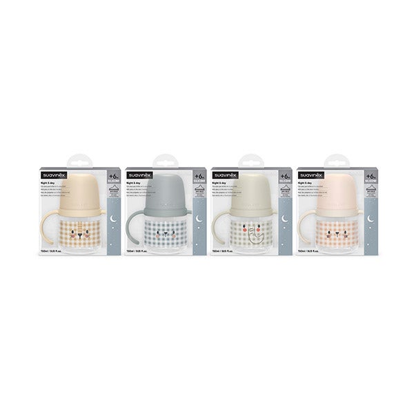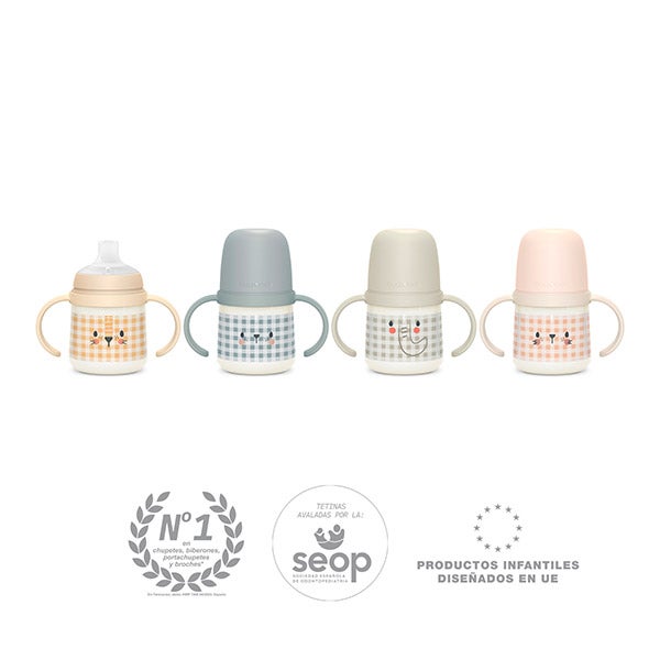 Su boquilla de silicona flexible incorpora un sistema anticólicos. La rosca con asas puede colocarse en cualquier biberón Suavinex, excepto en el modelo ZeroZero.