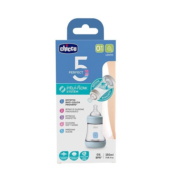 PERFECT 5 es un biberón biofuncional con efecto anticólicos que se ajusta naturalmente al ritmo de succión del bebé, ayudando a evitar que trague aire y disminuyendo las posibilidades de cólicos y regurgitaciones. Incorpora el exclusivo sistema intui Flow system. Su eficacia anticólicos ha sido confirmada por el 96% de las madres y cuenta con una aceptación del 98% entre los bebés.