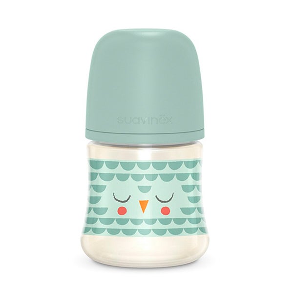 Biberón de 150 ml de Bonhomía, la gama Premium de Suavinex. Incluye Tetina Fisiológica SX Pro de Silicona, con Flujo Lento, +0 Meses.