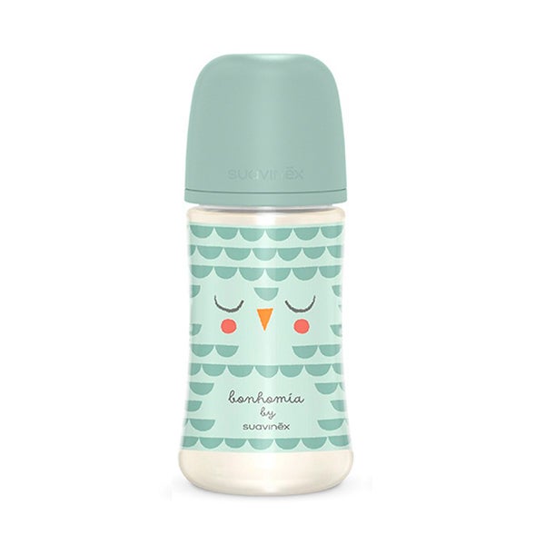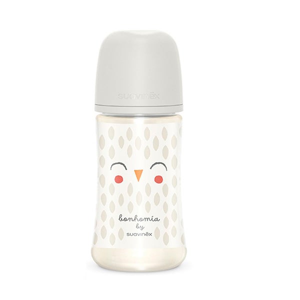 Biberón de 270 ml de Bonhomía, la línea Premium más reciente de Suavinex. Incluye una Tetina Fisiológica SX Pro de Silicona con Flujo Medio, +3 Meses.