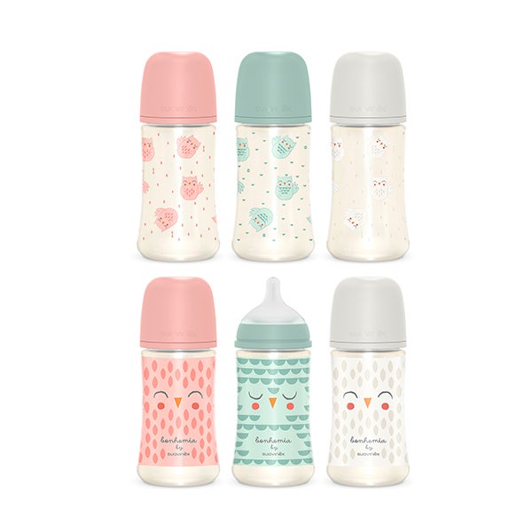 Este biberón forma parte de la colección Bonhomía de Suavinex. Más que una gama de productos, Bonhomía representa el aprecio por lo sencillo y el disfrute de los pequeños placeres, así como la amabilidad, la integridad y la dulzura en el trato y el carácter.