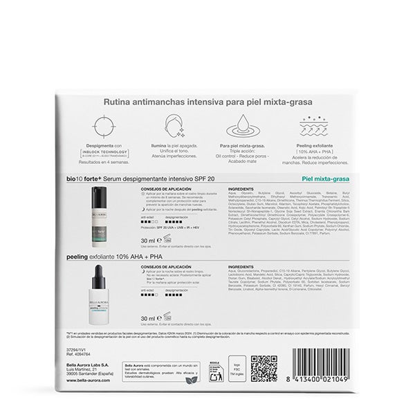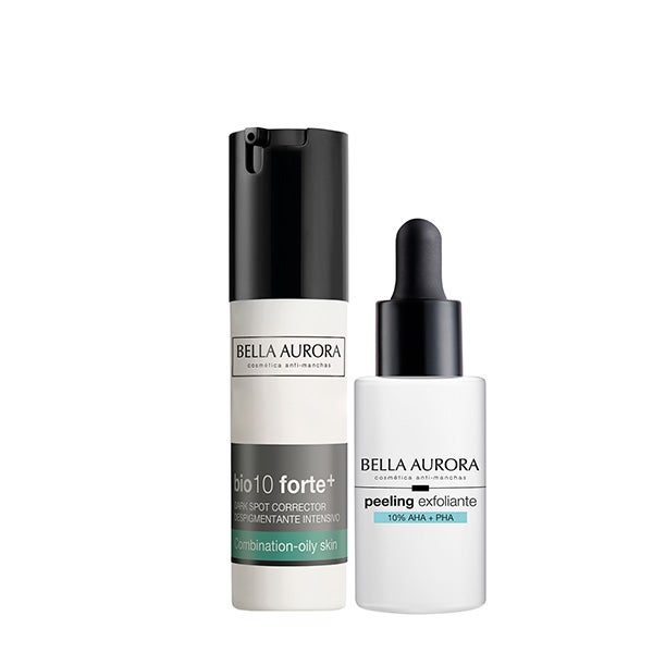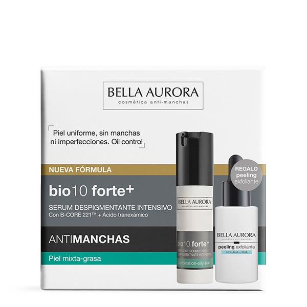 Este set incluye el serum bio10 forte+ para piel mixta-grasa y un peeling exfoliante