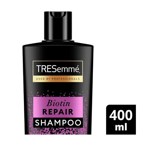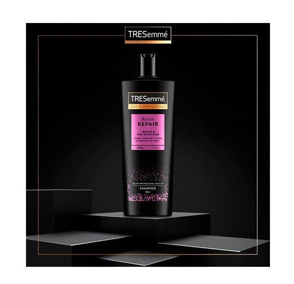 El champú TRESemmé Fortalece & REPARA restaura la energía y salud del cabello gracias a su sistema Fortalece y Repara, con Biotina y Pro-Bond Plex, diseñado para reconstruir los enlaces internos del cabello dañado y reforzar su fibra capilar con el uso regular.
