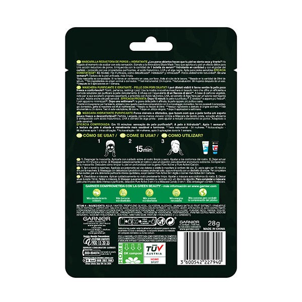 La mascarilla efecto detox reductora de poros Pure Charcoal de Garnier ayuda a limpiar profundamente la piel, eliminando impurezas y bacterias responsables de los puntos negros y las imperfecciones.
