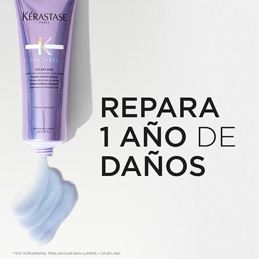 Blond Absolu Cicaflash de Kérastase es un acondicionador de acción fortificante que une la eficacia reparadora de una mascarilla con la ligereza propia de un acondicionador tradicional.