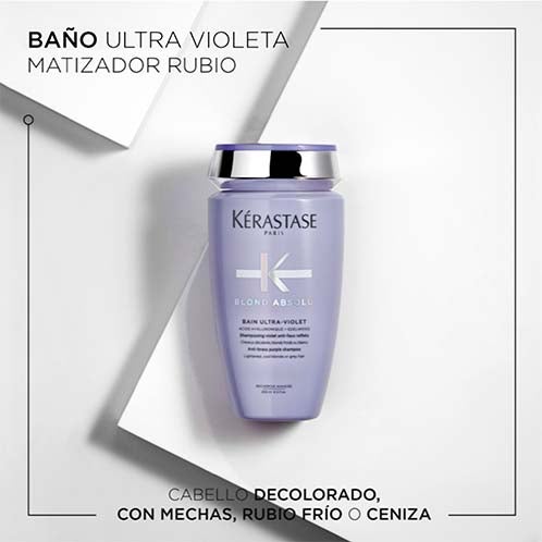 Este champú violeta, formulado con potentes agentes neutralizantes, elimina de manera inmediata los tonos amarillos no deseados. Perfecto para cabellos rubios fríos y grises, su uso constante ayuda a preservar el color evitando el amarilleamiento, prolongando la pureza del rubio. Actúa como barrera frente a la oxidación y la contaminación diaria, al mismo tiempo que devuelve al cabello su brillo y suavidad natural. Gracias a la combinación del ácido hialurónico y la flor de Edelweiss, contribuye a iluminar el tono del cabello mientras lo nutre en profundidad.