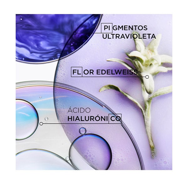 - Flor de Edelweiss: Rico en antioxidantes para proteger de la contaminación diraria. Suaviza y calma la fibra.