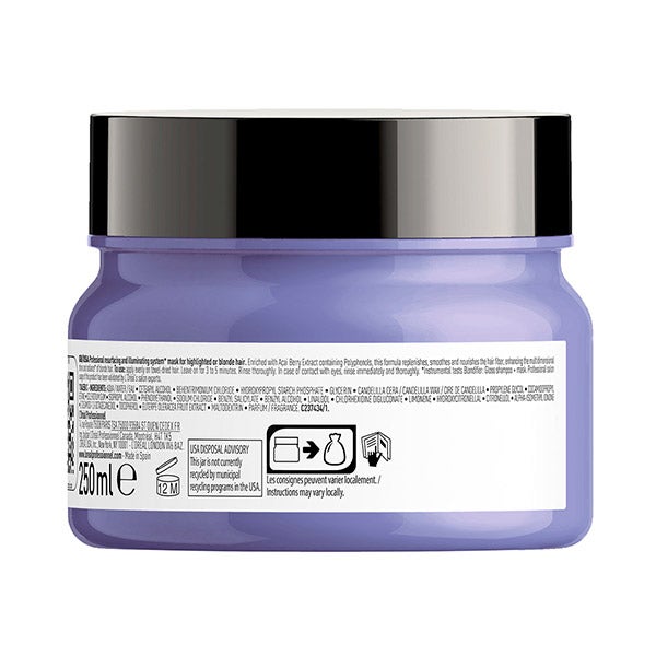 Mascarilla reparadora y potenciadora del rubio. Revitaliza, alisa, nutre y aporta luminosidad de forma inmediata al cabello sensibilizado. Su fórmula, enriquecida con extracto de bayas de açai ricas en polifenoles, restaura y acondiciona la fibra capilar, realzando el brillo natural y el esplendor de los tonos rubios.
