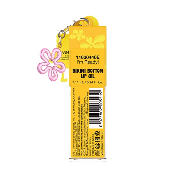 Disfruta un momento de relax junto a Bob Esponja, Patricio y el Sr. Cangrejo. Este aceite labial de Bikini Bottom aporta un acabado brillante y lleno de luz gracias a sus microdestellos que reflejan el resplandor desde cualquier perspectiva. Su llavero decorativo en la tapa lo convierte en un accesorio con encanto que une estilo y luminosidad.
