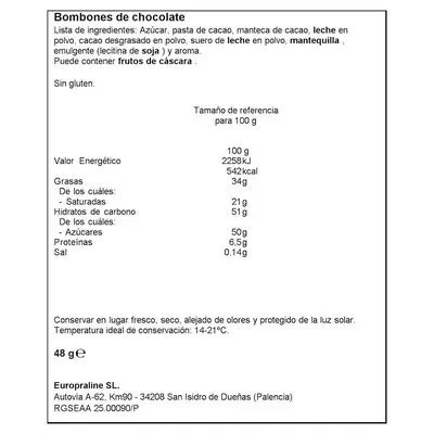 Cada bombón va envuelto individualmente y se sirven en estuches con forma de bolsita con 48 gramos cada uno.