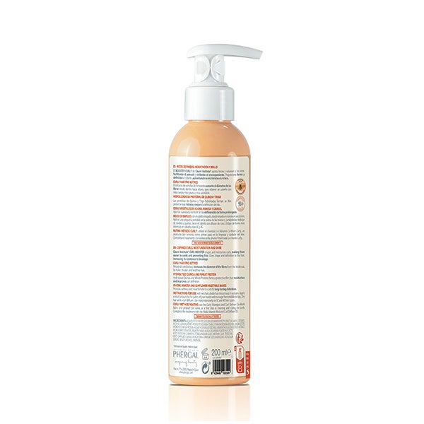 Booster curly que limpia y acondiciona a la vez, favorece el desenredado del cabello, mejora su resistencia frente a la rotura, lo nutre e hidrata profundamente y conserva una textura suave y con brillo natural.