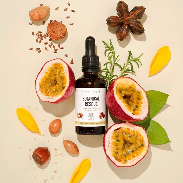 Devuelve el brillo y la vitalidad al cabello con su fórmula natural que integra 12 aceites botánicos puros y ecológicos, de propiedades nutritivas, suavizantes y reparadoras, entre ellos Argán, Babasú, Sésamo, Fruta de la Pasión, Sacha Inchi, Lino o Manketti, además de extractos infusionados de Amla, Romero, Cola de Caballo y Té Verde, reconocidas plantas revitalizantes, antioxidantes y fortificantes.