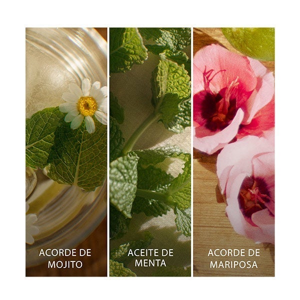 De carácter femenino y sumamente sensual, la frescura del aceite de menta aporta un corazón aromático y refrescante, armoniosamente acompañado por un toque final inspirado en la mariposa, flor nacional de Cuba.
