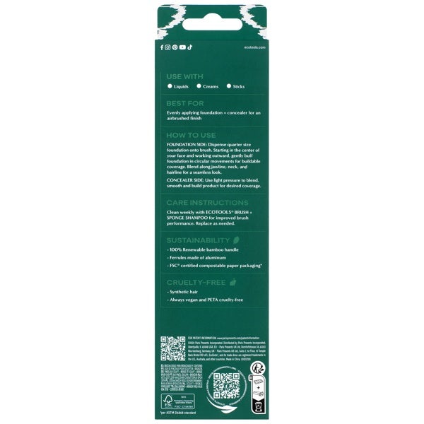 La brocha de maquillaje de doble extremo EcoTools Blend + Conceal dispone de dos funciones diseñadas para ayudarte a conseguir una base uniforme y natural.