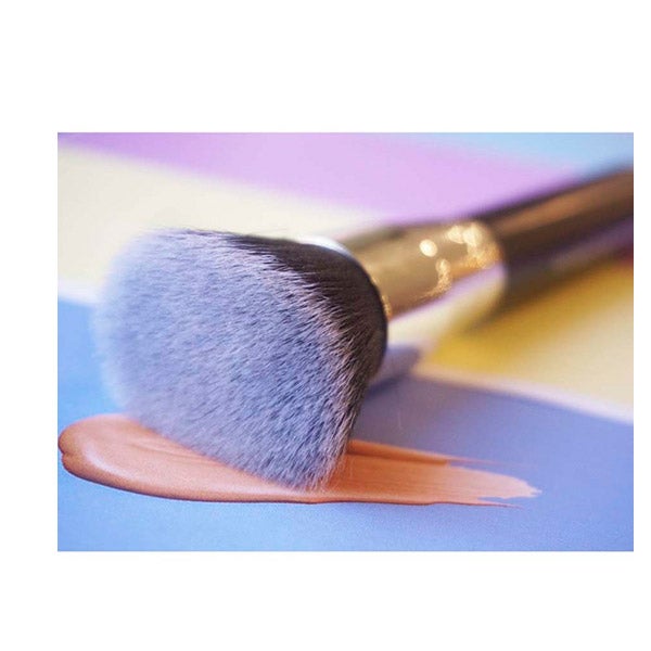 Brocha ideal para aplicar bases de maquillaje líquidas, diseñada para evitar que el producto se pierda dentro de las cerdas y lograr una distribución homogénea sobre la piel.