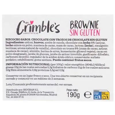 Mrs Crimble's Brownie de Chocolate sin gluten bolsa 190 gramos