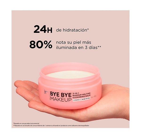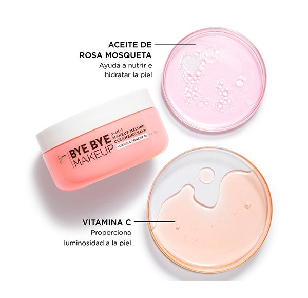 ¡Despídete del maquillaje y dale la bienvenida a una piel nutrida! Bye Bye Makeup, con su nueva fórmula mejorada, es un bálsamo limpiador 3 en 1 de textura fundente que hidrata y cumple varias funciones: