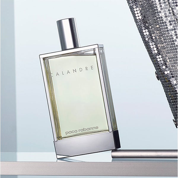 Calandre, 1969. El primer perfume Calandre con un toque de rosa "metálica". Una creación distintiva de la casa Paco Rabanne. Esta fragancia emblemática combina frescura y un matiz metálico que la hacen moderna, magnética y audaz. Calandre representa el espíritu innovador de todas las mujeres.