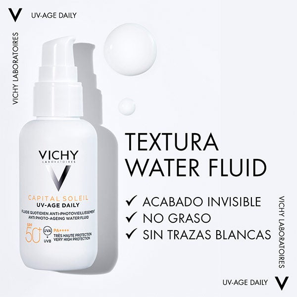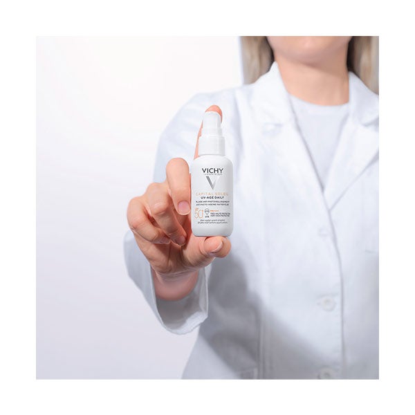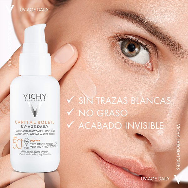 UV-AGE DAILY es un fotoprotector facial de uso diario que brinda una protección muy alta frente a los rayos UVB y UVA, ayudando a prevenir los signos visibles del fotoenvejecimiento, como arrugas y manchas.