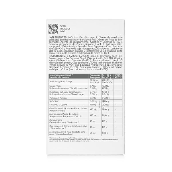 Aceite de semilla de calabaza (Cucurbita pepo),Serenoa repens,Ácido oleanólico, Pygeum africanum, Equisetum arvense,L-Cistina