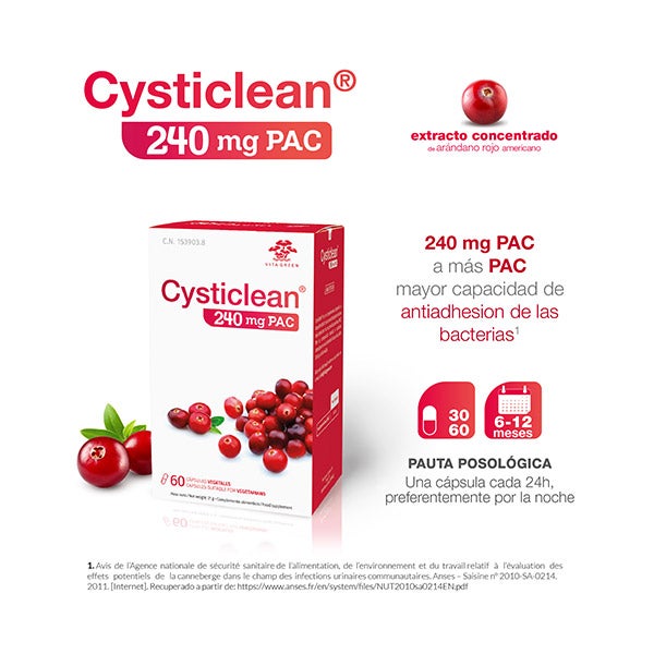 Refuerza tu bienestar con 240 mg de proantocianidinas (PAC) provenientes del potente Arándano rojo americano, un recurso natural que contribuye al equilibrio del sistema urinario gracias a sus cualidades antibacterianas y a la acción de las proantocianidinas.