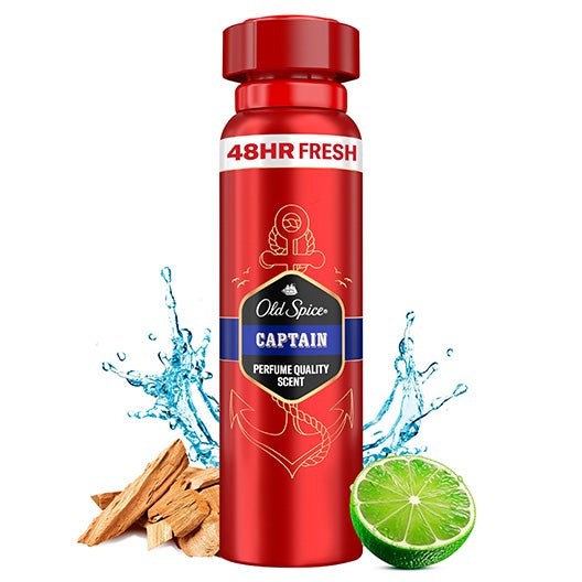 El desodorante corporal en spray Old Spice Captain para hombre neutraliza hasta los olores más intensos y deja una fragancia impactante y duradera.