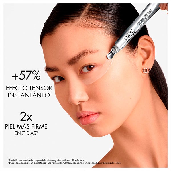 1. Tras usar el Contorno de Ojos Dior Capture, deposite una pequeña cantidad de Pro‑Collagen Shot en las esquinas internas del ojo: debajo del ojo y bajo el arco de la ceja.