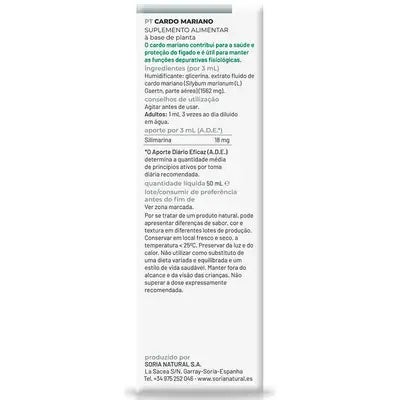 Extracto de cardo mariano en glicerina vegetal. El cardo mariano principalmente es un regenerador hepático (hepatoprotector), colagogo (favorece la eliminación de bilis de la vesícula biliar), digestivo. Indicaciones: cirrosis, alcoholismo, hepatitis e insuficiencias hepáticas. Efectos secundarios: a grandes dosis puede producir aumento de la tensión arterial. Consejos de uso: Adulto: se aconseja la toma 1 ml (aprox. 25 gotas) 3 veces al día diluido en agua.