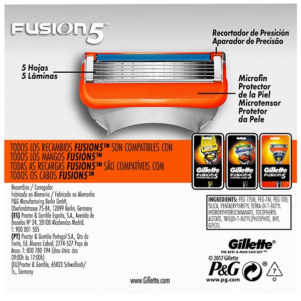 El cargador Fusion 5 con 4 recambios de Gillette está diseñado para la maquinilla desechable Gillette Fusion. Ofrece la misma tecnología de 5 hojas precisas con micropeines que facilitan un afeitado suave, controlado y con menor riesgo de irritación.