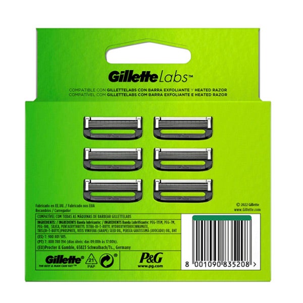 Los recambios GilletteLabs son compatibles con cualquier maquinilla de afeitar de la línea GilletteLabs, incluyendo tanto las que incorporan barra exfoliante como el modelo GilletteLabs Heated Razor.