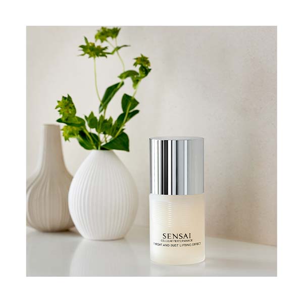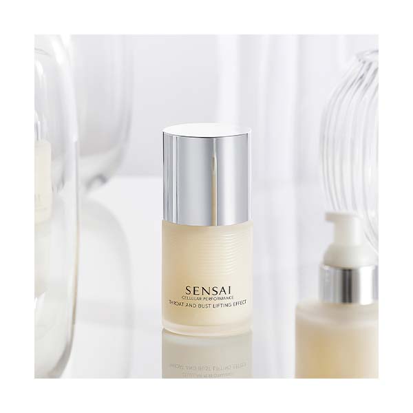 Cellular Performance Throat And Bust Lifting Effect es una esencia diseñada para realzar la apariencia del cuello, el escote y el busto, aportando una hidratación profunda y una acción tensora que suaviza la superficie cutánea, ofreciendo un aspecto más firme y definido. Su textura ligera se funde con la piel rápidamente, proporcionando una sensación de confort inmediato. Su avanzada formulación, que incluye extracto de Ougon y el exclusivo Hydra Firming Booster, estimula la generación de colágeno para reforzar la firmeza, elasticidad y tono cutáneo. También contiene Advanced CPX Vital Extract y Koishimaru Silk EX, que favorecen la síntesis natural de ácido hialurónico.