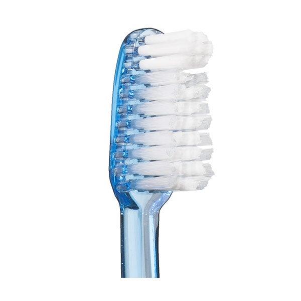 VITIS orthodontic es un cepillo diseñado para el uso diario, con un cabezal de tamaño estándar y filamentos de textura suave y media.