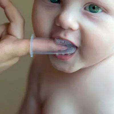 Para una perfecta higiene bucodental de tu bebé. Dedal de silicona con cepillo de dientes.
