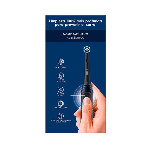 LOGRA UNA LIMPIEZA HASTA UN 100 % SUPERIOR en comparación con un cepillo manual tradicional gracias a la innovadora tecnología iO de Oral-B: EFICAZ CONTRA LA PLACA, GENTIL CON LAS ENCÍAS.