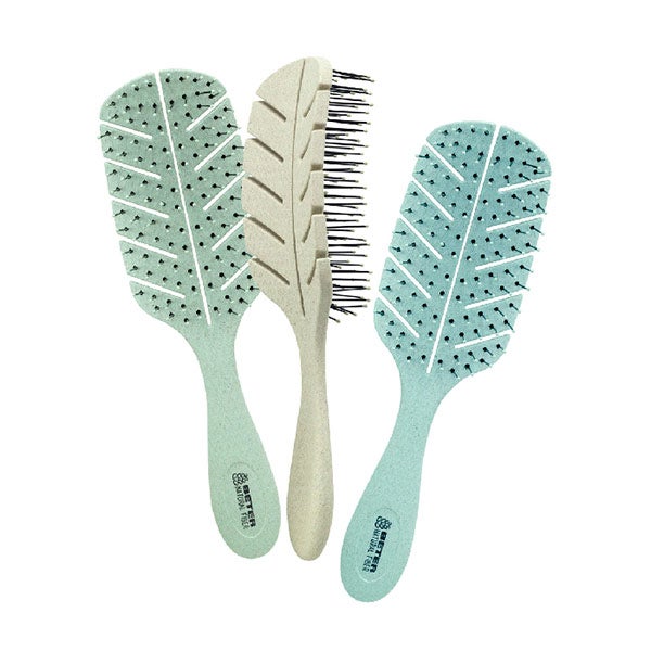 Cepillo para el cabello fabricado con materiales de origen natural, diseñado para disminuir la huella de CO2 y ofrecer una rutina de cepillado más respetuosa con el planeta.