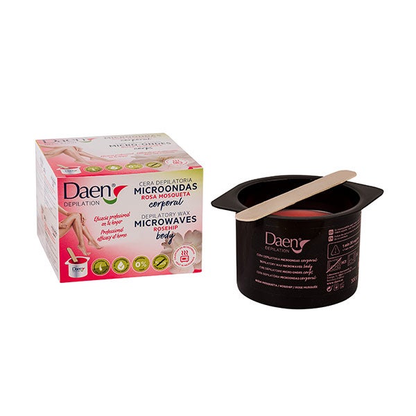 Cera depilatoria Daen de rosa mosqueta para microondas formulada con componentes naturales derivados de resinas.