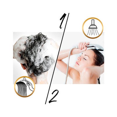Distribuir sobre el cabello húmedo y masajear hasta generar espuma. Enjuagar con abundante agua.