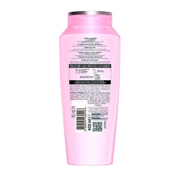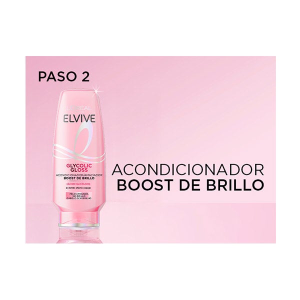 Experimenta el poder del Champú Boost de Brillo Elvive Glycolic Gloss, diseñado para cabellos apagados y sin vida. Su fórmula con ácido glicólico suaviza la fibra capilar y crea un efecto de doble brillo espejo al envolver cada hebra con una capa luminosa.