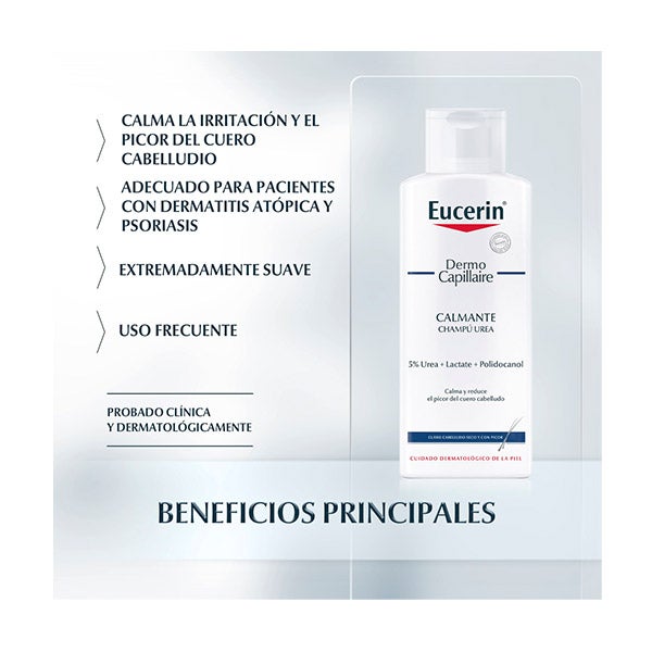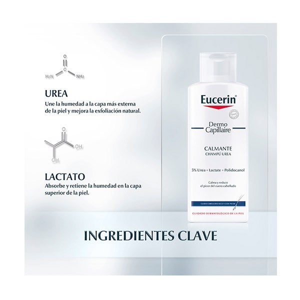 Eucerin DermoCapillaire CHAMPÚ UREA ha sido especialmente formulado para cuidar los casos de cuero cabelludo seco y con picazón.