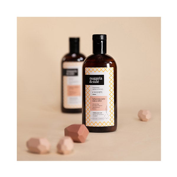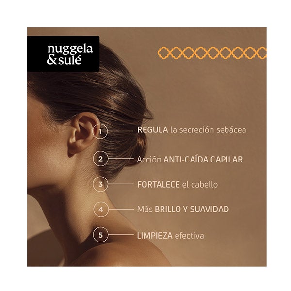 El Champú Epigenético Cabello Graso de Nuggela & Sulé ayuda a equilibrar la producción de sebo mientras que, gracias a su acción epigenética, favorece el crecimiento del cabello y mejora su vitalidad.